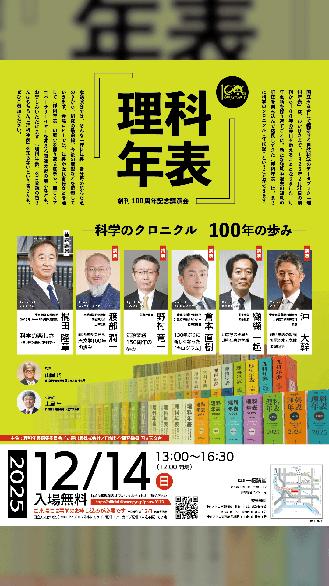 『理科年表』創刊100周年記念講演会 ―科学のクロニクル 100年の歩み―